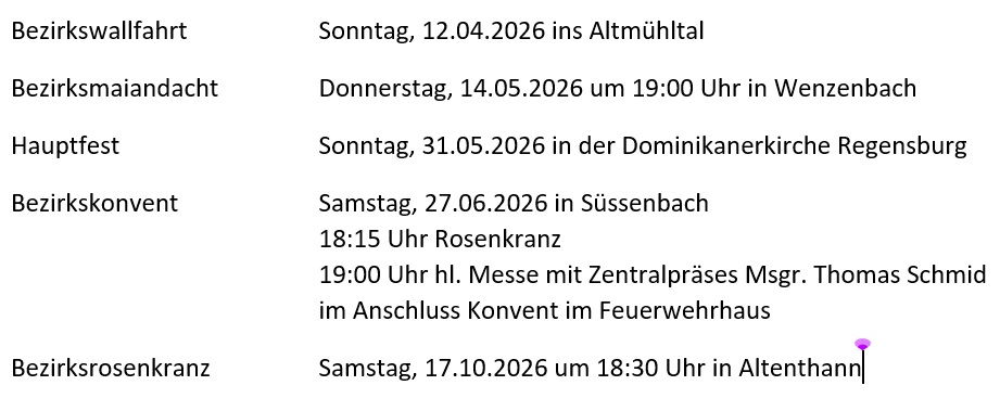 Zu Consultoren in den Marianischen Rat wurden Bezirksobmann Dietmar Weigert und sein Stellvertreter Ewald Pfeffer bestimmt. Stellvertretende Consultoren sind Max Zitzelsberger aus Bernhardswald und Ottmar Kammerer aus Zell.