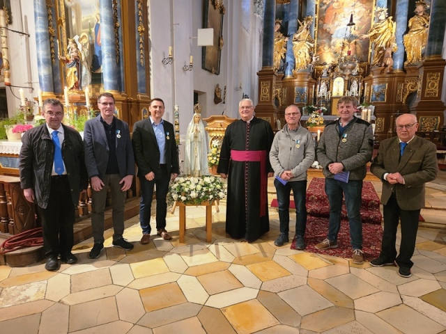 Anschließend gab er die wichtigen Termine für 2026 bekannt: die Bezirksmaiandacht am 3. Mai in Hohenschambach, das Hauptfest Süd am 31. Mai, der Monatskonvent in der Albertus-Magnus-Kapelle am 17. Juli, die Fußwallfahrt nach Mariaort am 16. August und der Bezirkskonvent am 9. Oktober in Herrnried.