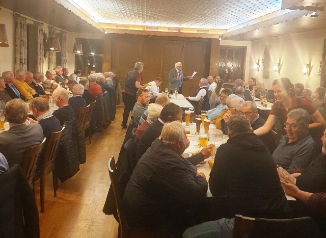 Beim anschließenden Konvent im Gasthof „Tangrintler Hof“ in Tiefenhüll konnte Dummer etwa 70 Sodalen begrüßen. Er bedankte sich besonders bei den zwölf Bannerträgern und lobte den guten Besuch des Gottesdienstes.