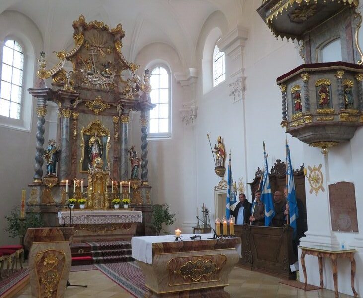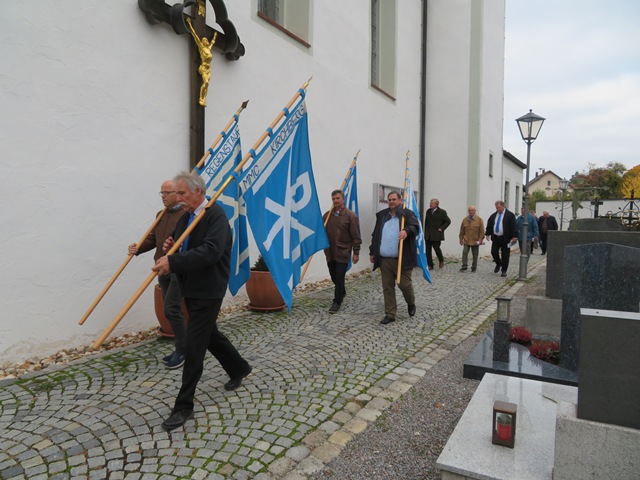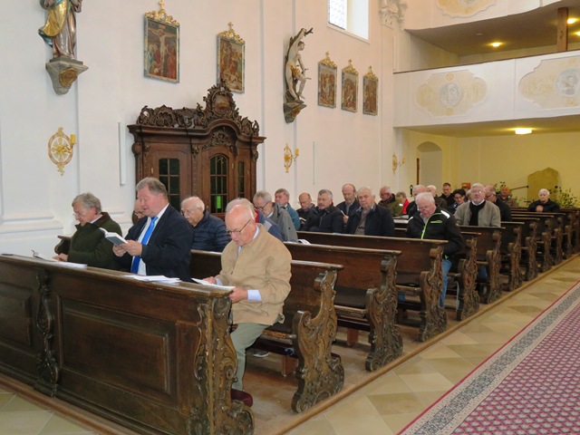 Die Sodalen, teilweise mit den Ehefrauen beteten den „Christus-Rosenkranz“ Gebet um Frieden. Diesen hat unser Zentralpräses Msgr. Thomas Schmid zusammengestellt. Eingeleitet wurde der Rosenkranz mit dem Lied „Wohin soll ich mich wenden“, angestimmt vom Stellv. Bezirksobmann Günther Brandl. Als Vorbeter fungierte Johann Faltermeier und die Betrachtungen wurden vom Günther Brandl vorgetragen. Mit dem Abschusslied „Wer glaubt ist nicht allein“ wurde die Rosenkranzandacht beendet.