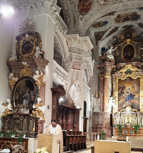 Am Sonntag, den 12. Oktober 2025, fand in der Klosterkirche Speinshart ein besonders gestalteter Rosenkranz auf dem Programm. Bezirkspräses P. Johannes Bosco Ernstberger hatte dazu Meditationen zu den glorreichen Geheimnissen vorbereitet. Inspiriert wurde er dabei durch Gedanken von Karl Hillenbrand, dem verstorbenen Generalvikar des Bistums Würzburg.