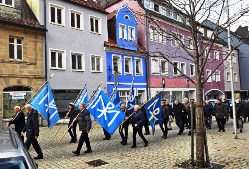 Begleitet von der Michelfelder Blasmusik zog die Marianische Männer Congregation mit etwa 40 Sodalen und 7 Fahnenabordnungen aus Pressath, Kulmain, Kemnath, Mockersdorf, Speinshart und Schlammersdorf, sowie die Zentralbanner aus Regensburg am Sonntag, den 26. Oktober, vom Place de Laneuveville zur Stadtpfarrkriche St. Johannes der Täufer, um dort den Festgottesdienst gemeinsam mit dem Zentralpräses Msgr. Thomas Schmid und Stadtpfarrer Pater Markus Flasinski zu feiern.