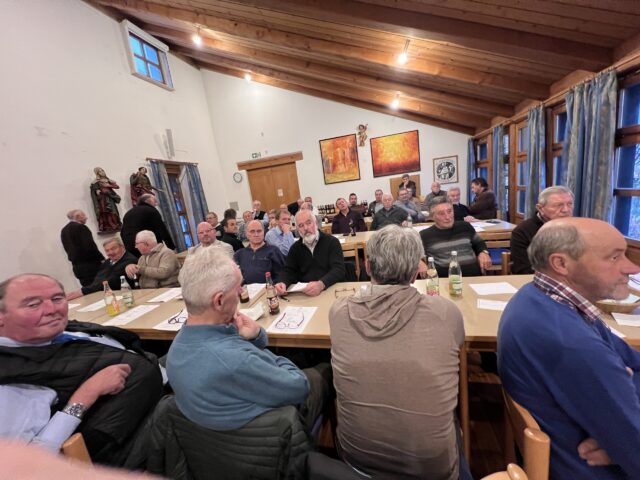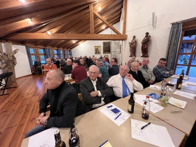 Teilnehmer aus allen Pfarrcongregationen der Marianischen Männer-Congregation (MMC) Regensburg waren am 8. November 2025 zum Gemeinsamen Obmännertag in das Pfarrheim in Diesenbach gekommen.