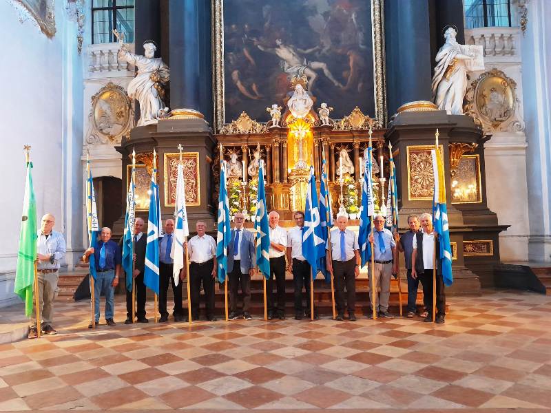 10 Bannerträger der Marianischen Männer-Congregation (MMC) und weitere Christliche Vereinigungen feierten mit dem Weihbischof Graf in der Wolfgangs-Woche einen feierlichen Gottesdienst.