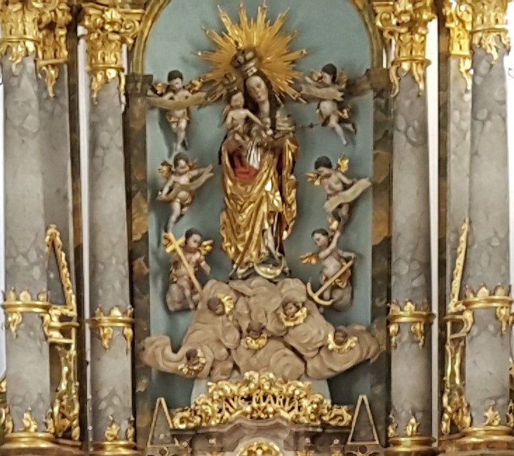 Auf dem Pilgerweg beteten die rd. 50 Sodalen mit ihren 20 Bannern den glorreichen Rosenkranz mit Einfügungen und Gebeten für den Frieden, der in diesen Zeiten immer stärker bedroht ist.