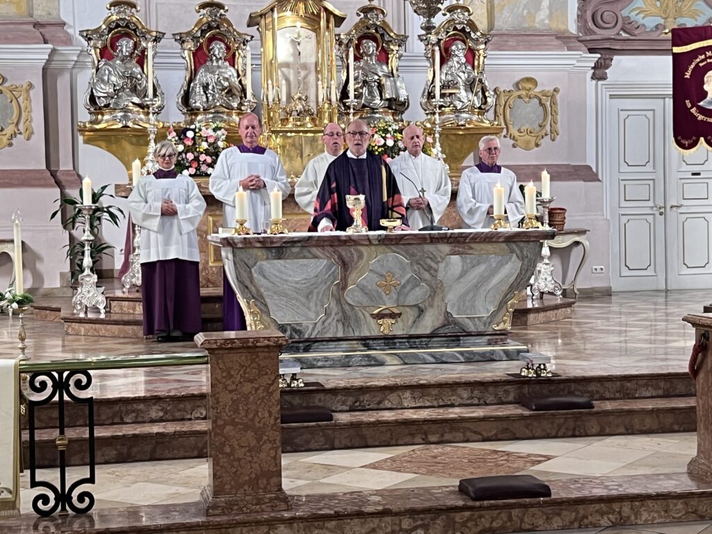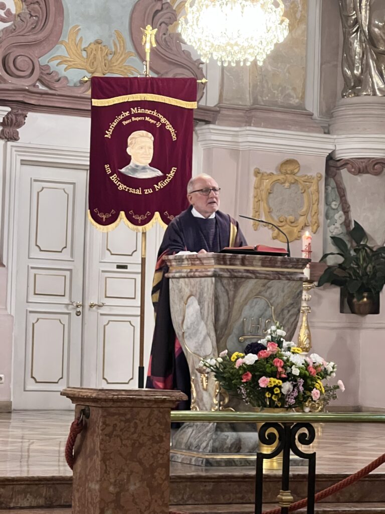Um 11.30 Uhr war ein Festgottesdienst in der Oberkirche zum Hauptkonvent der Marianischen Männer-Kongregation München, an dem wir uns beteiligen konnten. Zelebrant war der Präses der MMK, P. Karl Kern SJ. Musikalisch wurden Werke für Tenor, Cello und Orgel: Johann Sebastian Bach: Bist du bei mir; Fantasie c-Moll, BWV 537.Robert Schumann: Ave Maria.César Franck: Panis angelicus aufgeführt. Kammersänger Kevin Conners, Tenor und Prof. Michael Hartmann, Orgel waren die Solisten.